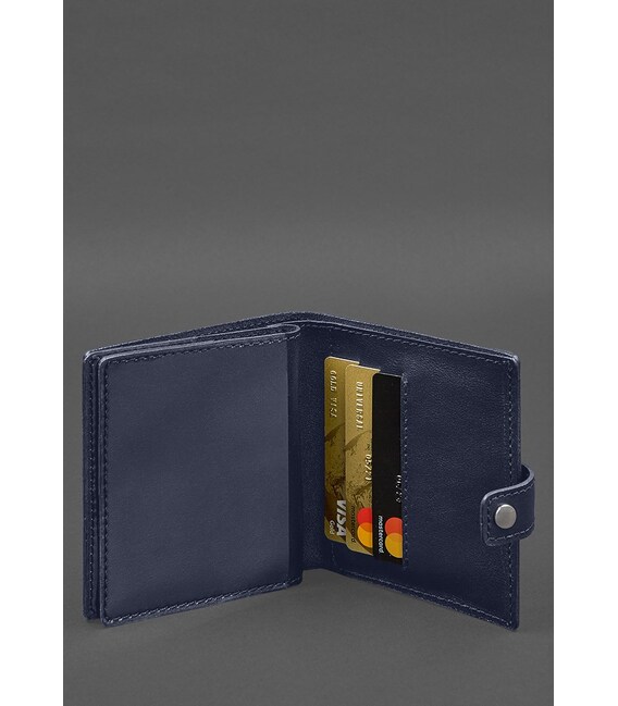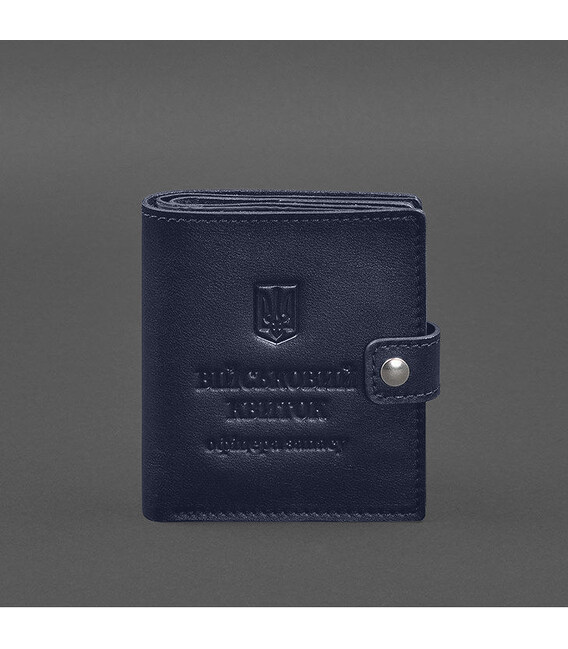 Шкіряна обкладинка-портмоне для військового квитка офіцера запасу (широкий документ) Синій