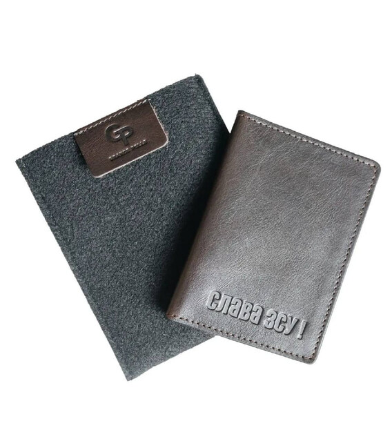 Шкіряна обкладинка для військового квитка Слава ЗСУ шоколад Grande Pelle 257620 сорт - Наппа.
