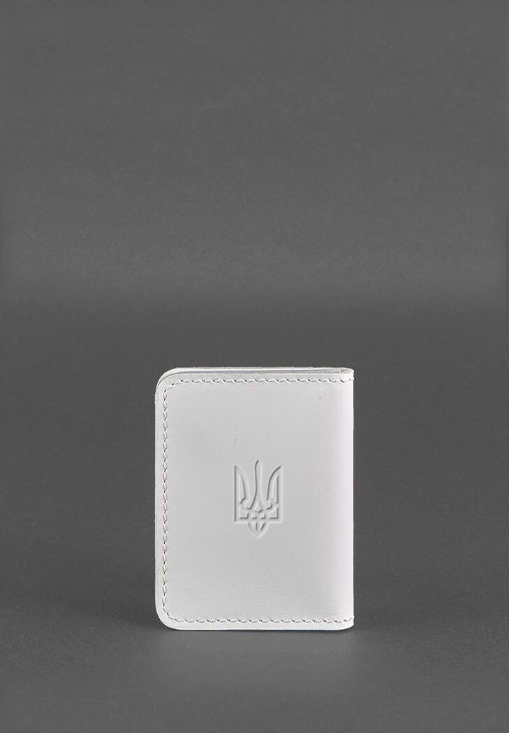 Жіноча шкіряна обкладинка для ID-паспорта і водійських прав 4.1 Біла прикрашена тисненням у вигляді герба України.