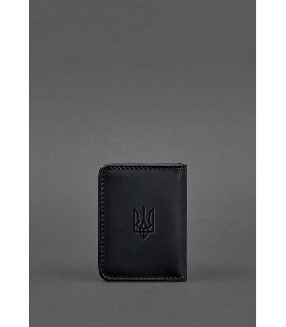 Шкіряна обкладинка для ID-паспорта і водійського повсідчення 4.1 чорна Crazy Horse з гербом