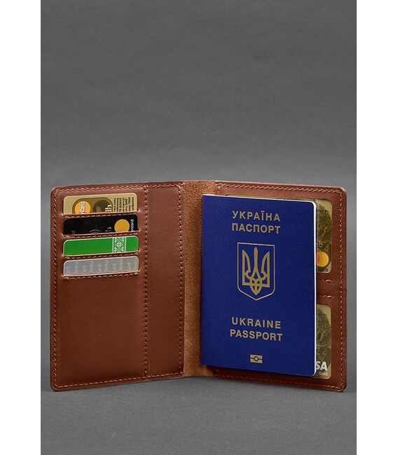 Шкіряна обкладинка-органайзер для документів 6.1 світло-коричневий краст
