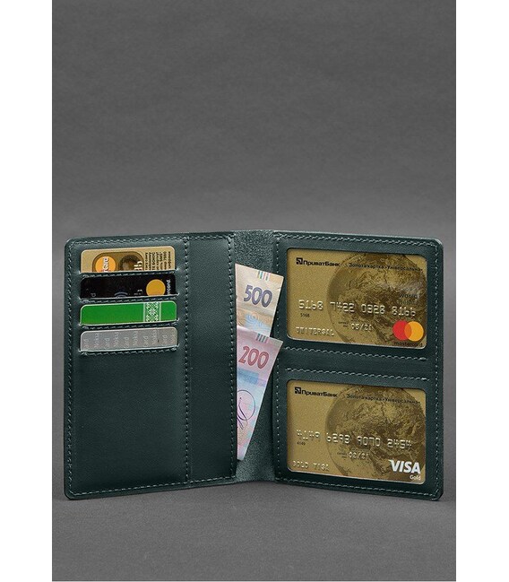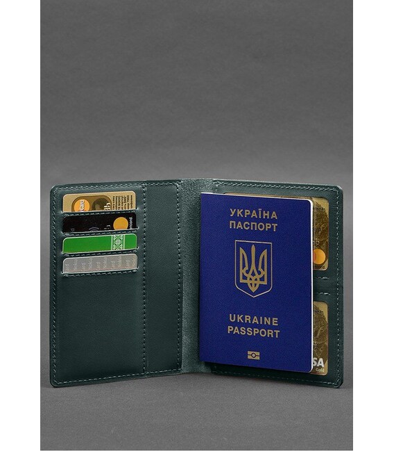 Шкіряна обкладинка-органайзер для документів 6.1 зелений краст