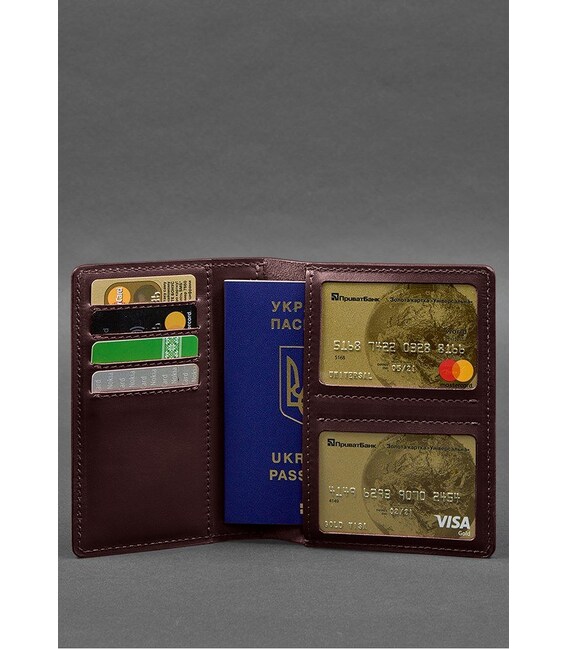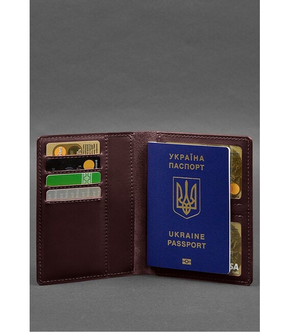 Шкіряна обкладинка-органайзер для документів 6.1 бордовий краст