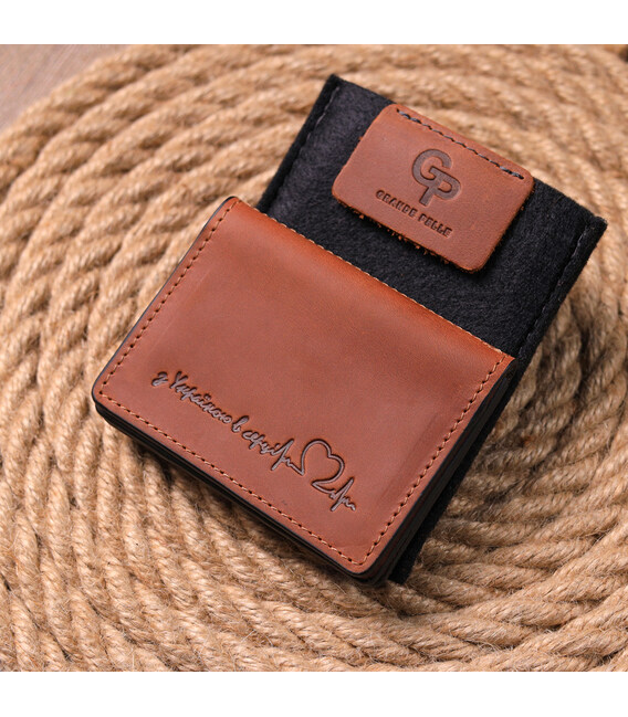 Якісна обкладинка для автомобільних документів, з патріотичним написом “З Україною в серці”. Виріб пошитий з італійської якісної шкіри. По краях модель прошита коричневою строчкою в дизайн виробу. Виріб невеликого розміру і легко поміститься в кишеню або маленьку сумку. У комплекті виробу йде фірмовий фетровий чохол. Вироби зі шкіри завжди вважалися відмінним подарунком, незалежно від статі та віку.