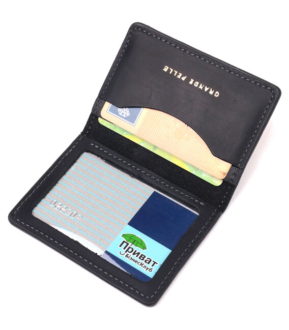 Надійна обкладинка на автодокументи у вінтажній шкірі Україна GRANDE PELLE 16749 Чорна