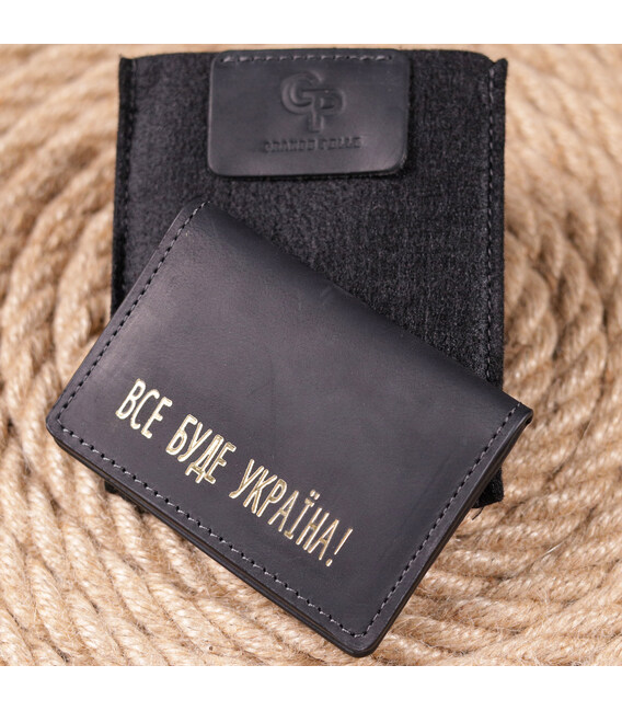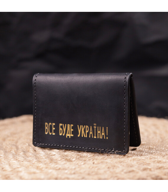 Практична обкладинка на авто документи, з вінтажної добротної шкіри, для справжнього патріота з тисненням "Все буде Україна" на лицьовій стороні. Виріб пошитий з італійської якісної шкіри. По краях модель прошита чорною строчкою в дизайн виробу. Виріб невеликого розміру і легко поміститься в кишеню або маленьку сумку. У комплекті виробу йде фірмовий фетровий чохол.