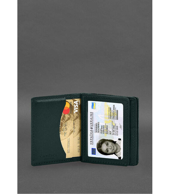 Шкіряна обкладинка для посвідчення водія, ID та пластикових карток 2.1 зелена