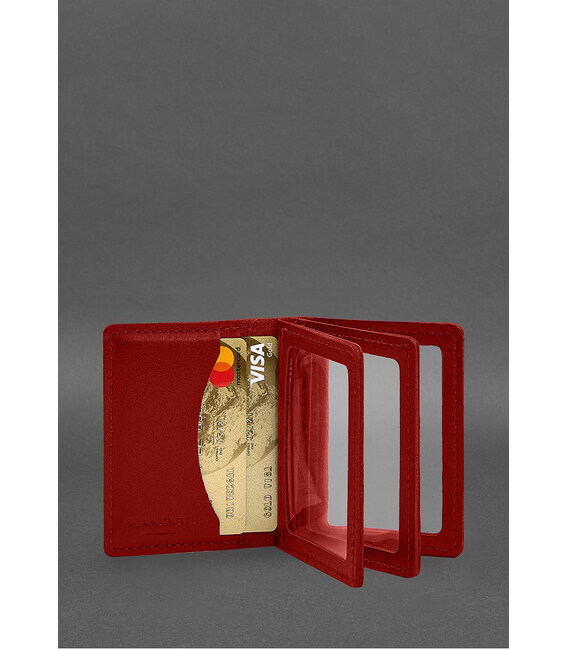 Шкіряна обкладинка для посвідчення водія, ID і пластикових карток 2.1 червона