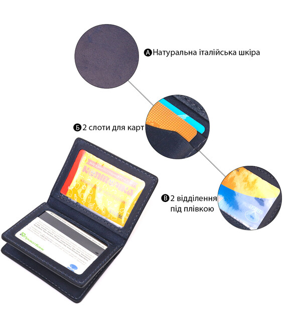 Практична обкладинка на автодокументи у вінтажній шкірі Серце GRANDE PELLE 16714 Синій
