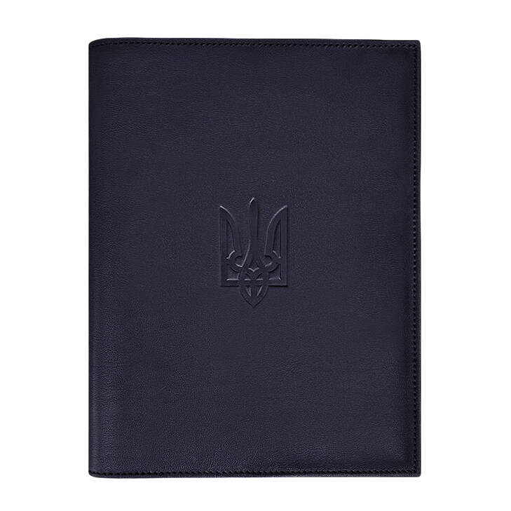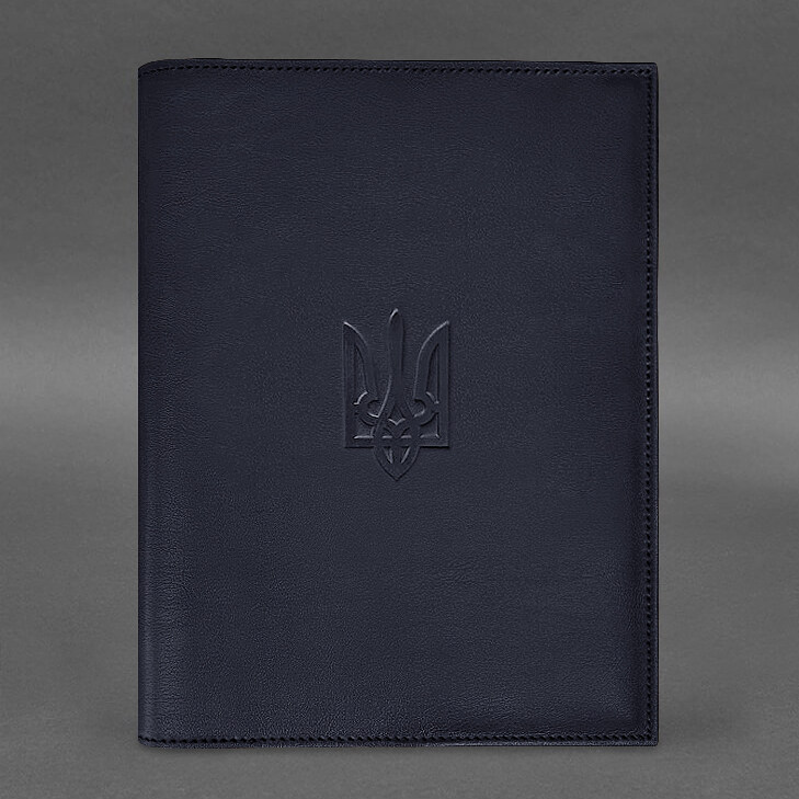 Шкіряна обкладинка для нотаріального реєстру з Тризубом темно-синя картинка, зображення, фото
