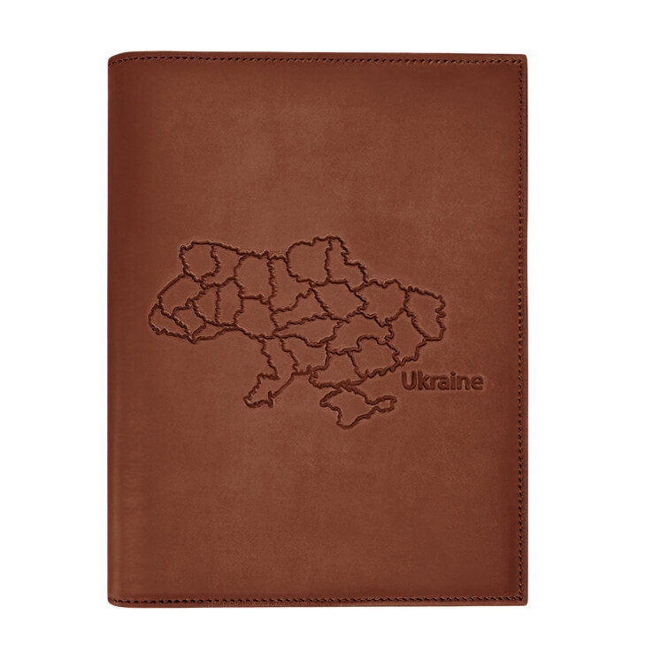 Ця стильна шкіряна обкладинка для нотаріального реєстру з тисненням у вигляді мапи України. Виготовлена з натуральної шкіри найвищої якості, вона не лише має чудовий вигляд, але й надійно захищає важливі документи.
