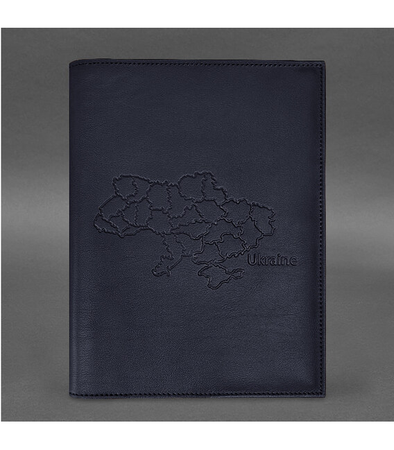 Шкіряна обкладинка для нотаріального реєстру з мапою України темно-синя