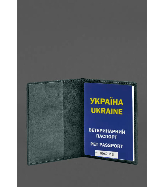 Шкіряна обкладинка на ветеринарний паспорт 2.0 зелена