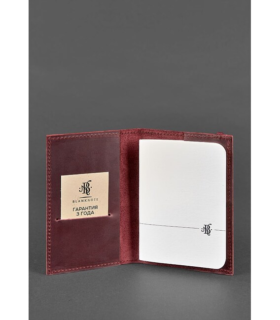 Шкіряна обкладинка для паспорта 1.0 бордова Crazy Horse