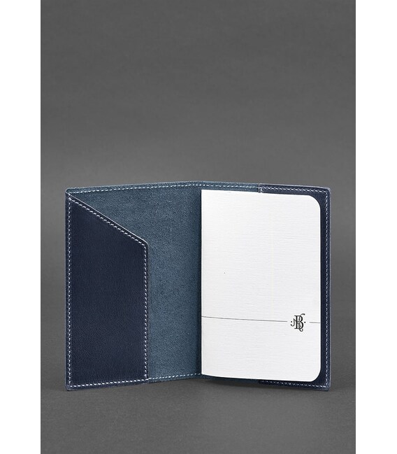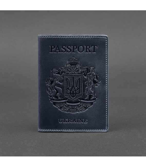 Шкіряна обкладинка для паспорта з українським гербом синя