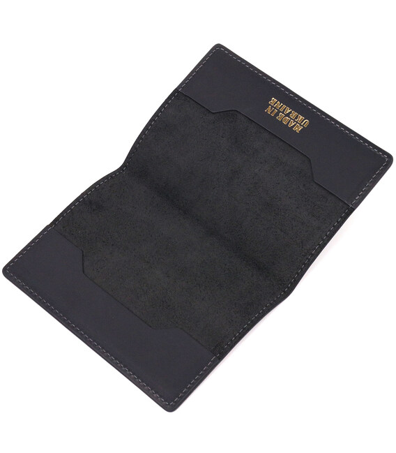 Надійна обкладинка на паспорт у вінтажній шкірі Слава ЗСУ GRANDE PELLE 16724 Чорна