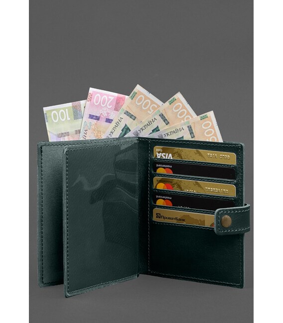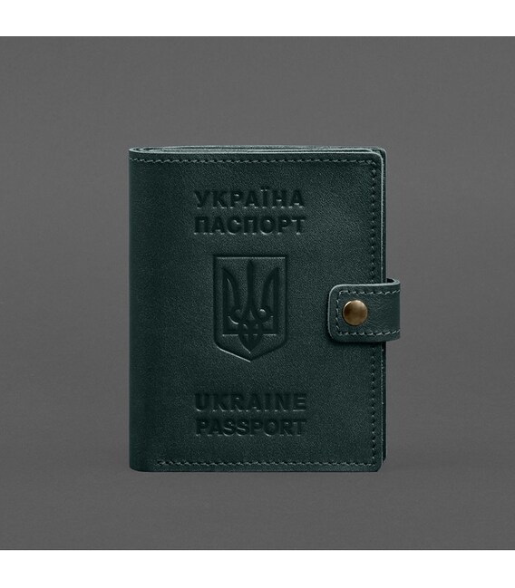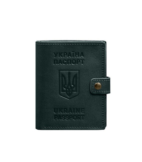 Шкіряна обкладинка-портмоне на паспорт з гербом України 25.1 Зелена