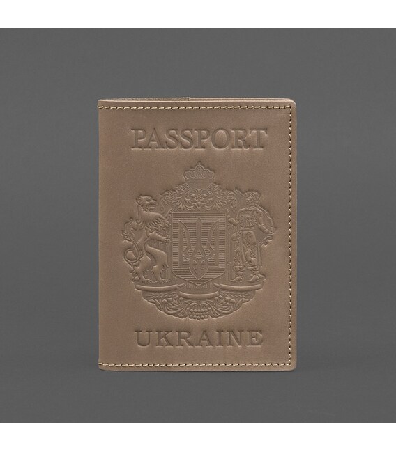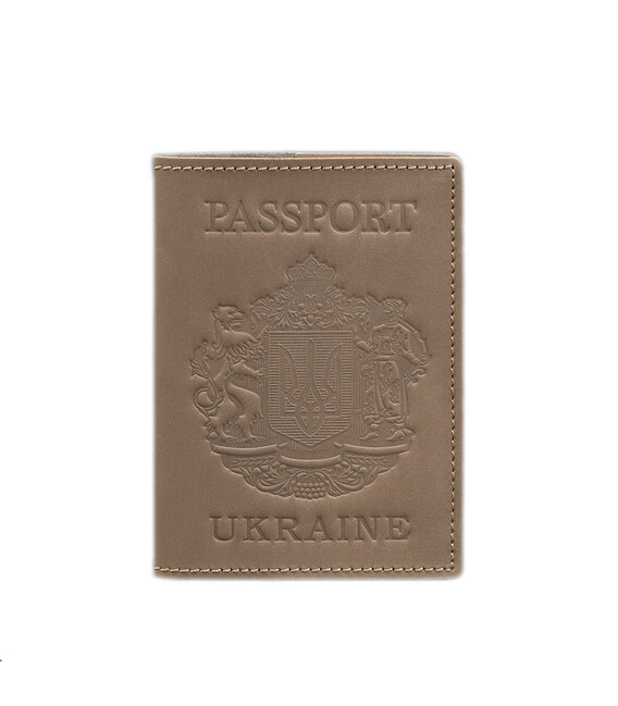 Шкіряна обкладинка для паспорта з українським гербом світло-бежева