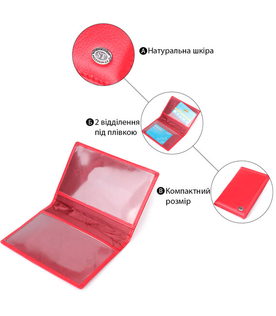 Детальніше Яскрава обкладинка на паспорт універсального формату із натуральної шкіри ST Leather 23080 Червоний