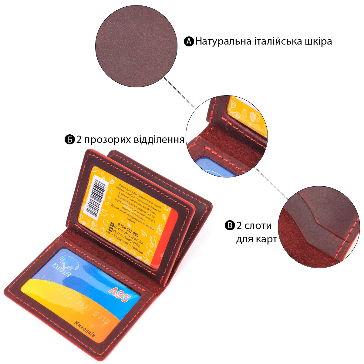 - два прозорі відділення для автомобільних документів;