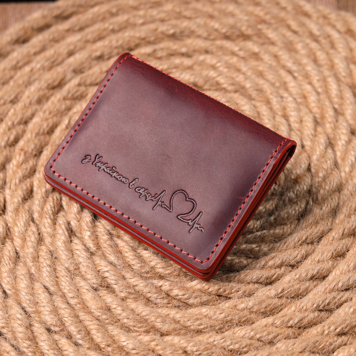 Жіноча яскрава обкладинка для авто документів з патріотичним написом “З Україною в серці”. Виріб пошитий з італійської якісної шкіри. По краях модель прошита червоною строчкою в дизайн виробу. Виріб невеликого розміру і легко поміститься в кишеню або маленьку сумку. У комплекті виробу йде фірмовий фетровий чохол. Вироби зі шкіри завжди вважалися відмінним подарунком, незалежно від статі та віку.