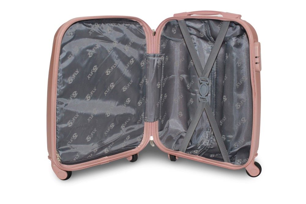 Пластикова валіза Fly 310 виготовлений із пластику ABS +, що забезпечує міцність і стійкість на будь-які атмосферні фактори. Чемодан закривається на блискавку і додатково захищений кодовим замком для збереження багажу. Оснащений чотирма поворотними колесами на підшипниках, завдяки чому може обертатися навколо своєї осі і його легко переміщуватись. Цьому так само сприяє висувна ручка. Усередині валіза викладена тканинною підкладкою, яка захищає багаж від ударів і подряпин, має ремені і відділення на блискавці, які кріплять багаж.
