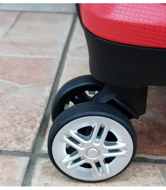 Даний чемодан оснащений 4-ма безшумними поліурітанового колесами. Радіус обертання 360 градусів.
