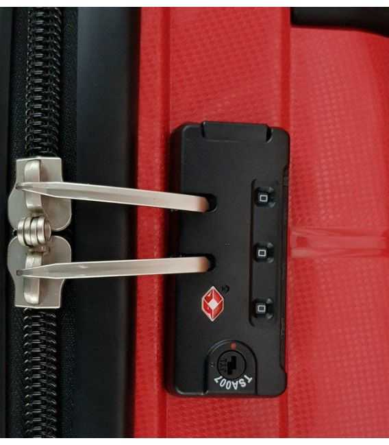 Ваш багаж надійно захищає замок з функцією TSA (замок з тризначним кодом, схвалений Адміністрацією транспортної безпеки США). Звертаємо Вашу увагу, що ключ до такого замку є тільки у співробітників митниці і спецслужб! Червоний ромб на корпусі замку, це міжнародна маркування на відповідність стандарту TSA.