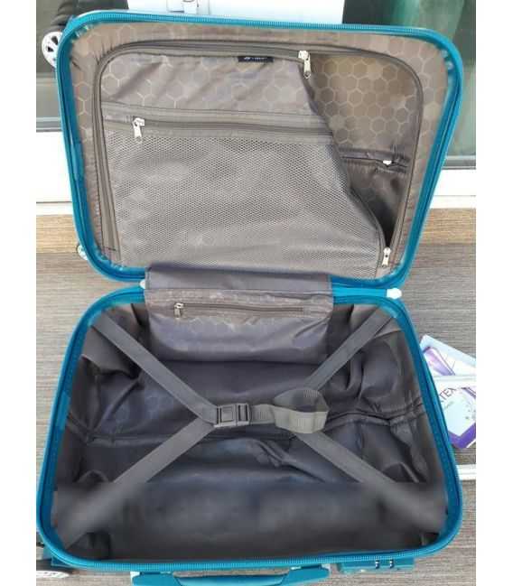 В валізи є 2 відділення: одне з фіксуючими ременями, інше закривається на блискавку. Зверху і збоку валізи розташовані стаціонарні ручки для ручного перенесення в вертикальному або горизонтальному положеннях. Є висувна телескопічна ручка на металевій основі з кнопкою для фіксації висоти.