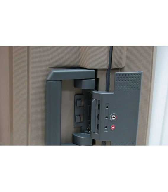 Чемодан виготовлений з міцного і легкого матеріалу - поліпропілен, який характеризується високою гнучкістю і стійкістю до механічних пошкоджень, що є важливим фактором під час авіаперельотів.