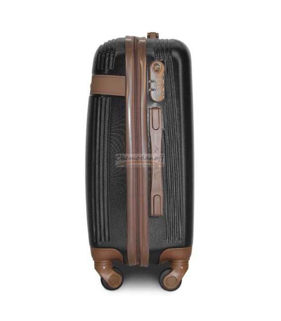 Безумовно цей самий естетично красивий чемодан на ринку. У ньому гармонійно поєднані помірна суворість і витончена елегантність. Чемодан подібного дизайну підійде всім хто цінує оригінальну лінію форм і сувору практичність. Зовнішній матеріал валізи - пластик ABS Plus *. Цей матеріал входить в трійку найміцніших і ударотривких матеріалів на ринку. Для збереження форми, по внутрішньому периметру валізи вмонтована цільна сталева рама. А поряд з продуманою конструкцією пластика, чемодан в змозі витримати навіть самі екстремальні навантаження. Валіза з поверхні переміщається на чотирьох поліуретанових колесах, надійно закріплених на платформі металевим стрижнем і металевими підшипниками. Володіючи мінімально продуманим люфтом, телескопічна ручка валізи висувається легко і невимушено. Всередині у валізи два просторих відділення. Обидва відділення обтягнуті марки й приємним на дотик матеріалом. Для невисоких людей і зручності носіння в руках, крім ручки розташованої у верхній частині валізи, знаходиться ручка і з його бічної сторони. Всі сторони валізи від контакту з поверхнею застраховані спеціальними захисними вкладишами. Від випадкових відкриттів і небажаних гостей у валізу вмонтований надійний кодовий замок.