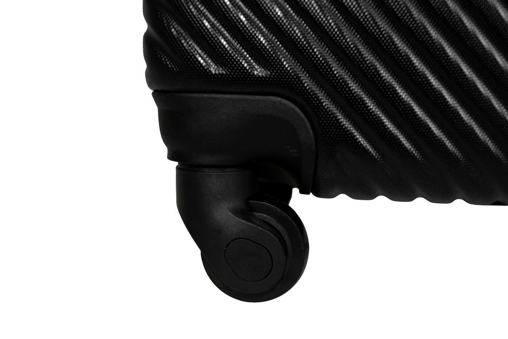 Матеріал валізи полікарбонат. Ребриста структура валізи має не тільки вишуканий дизайн але міцний і стійкий до ударів і подряпин корпус. Колеса поліуретанові на підшипниках, які обертаються на 360 градусів. У розмірі S колеса знімаються, що дуже зручно при транспортуванні.