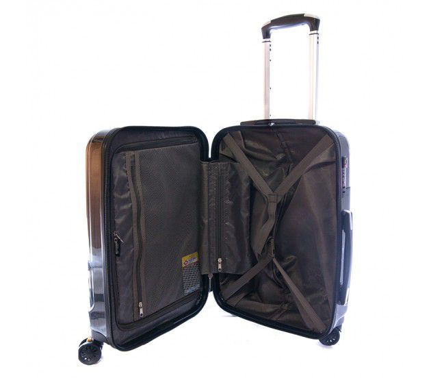 В валізи є 2 відділення: одне з фіксуючими ременями, інше закривається на блискавку. Зверху і збоку валізи розташовані стаціонарні ручки для ручного перенесення в вертикальному або горизонтальному положеннях. Є висувна телескопічна ручка на металевій основі з кнопкою для фіксації висоти.