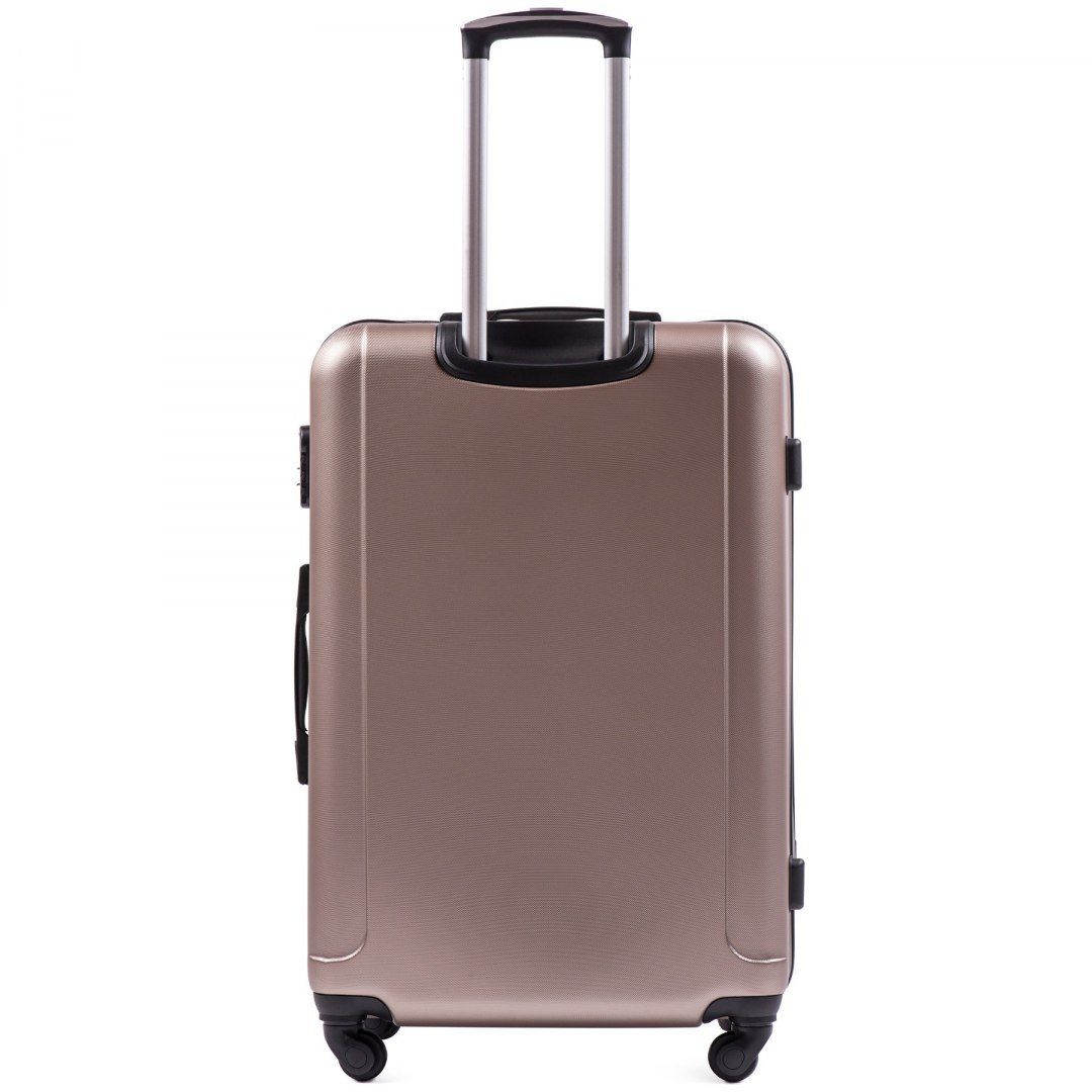 Розкішний чемодан від відомої компанії WINGS створений для найвимогливіших клієнтів. Сучасна, легка модель, виконана з міцного пластику ABS Plus міцний і стійкий до подряпин, з дворівневої телескопічною ручкою. Зовнішні, приємні на дотик гумові ручки і комбінований замок, який запобігає проникненню людей. Міцна, дюралюмінієва рама, встановлена в валізі. Обладнаний чотирма поворотними гумовими колесами, які забезпечують стабільність і легкість в будь-якому напрямку. Інтер'єр в темному кольорі ділиться блискавкою на дві функціональні камери.