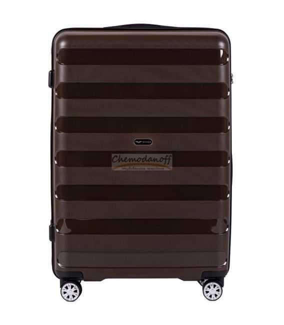 Коричнева дорожня валіза на колесах Wings PP-07 Midi з поліпропілену з кодовим замком