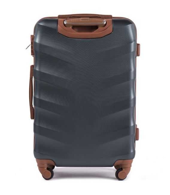 Валіза на коліщатках Wings виповнена з надійного ударостійкого сплаву пластику ABS, що дозволяє їй бути міцною і легкою, а також вікористовувати для будь-яких подорожей. Валіза має жорстку форму. Виріб закривається на молнію. Чемодан оснащений телескопічною ручкою на металевій основі і підйомною пластиковою ручкою на бічній поверхні, а також ручкою, яка розташована зверху валізи. Чотири колеса повертаються на 360 градусів. Є кодовий замок для збереження речей. Усередині виробу є притискні ремені для багажу. На іншій бічній поверхні розташовані невеликі пластикові ніжки. Валіза має водовідштовхувальні властивості і стійкість до вигоряння.