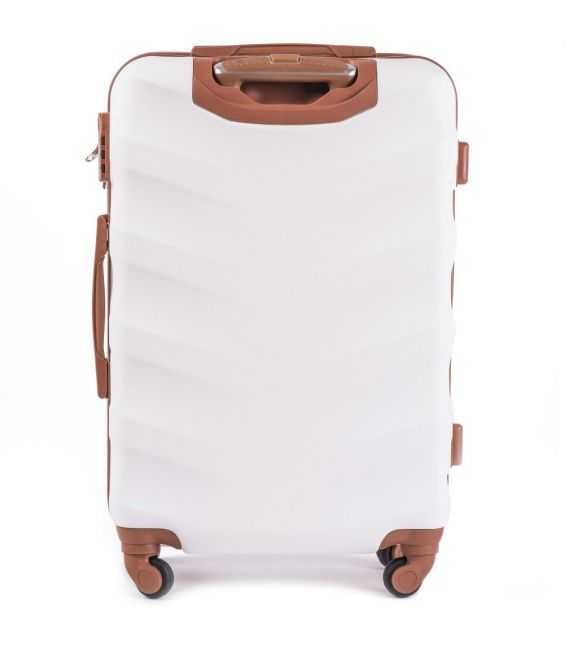 Валіза на коліщатках Wings виповнена з надійного ударостійкого сплаву пластику ABS, що дозволяє їй бути міцною і легкою, а також вікористовувати для будь-яких подорожей. Валіза має жорстку форму. Виріб закривається на молнію. Чемодан оснащений телескопічною ручкою на металевій основі і підйомною пластиковою ручкою на бічній поверхні, а також ручкою, яка розташована зверху валізи. Чотири колеса повертаються на 360 градусів. Є кодовий замок для збереження речей. Усередині виробу є притискні ремені для багажу. На іншій бічній поверхні розташовані невеликі пластикові ніжки. Валіза має водовідштовхувальні властивості і стійкість до вигоряння.