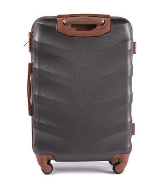Валіза на коліщатках Wings виповнена з надійного ударостійкого сплаву пластику ABS, що дозволяє їй бути міцною і легкою, а також вікористовувати для будь-яких подорожей. Валіза має жорстку форму. Виріб закривається на молнію. Чемодан оснащений телескопічною ручкою на металевій основі і підйомною пластиковою ручкою на бічній поверхні, а також ручкою, яка розташована зверху валізи. Чотири колеса повертаються на 360 градусів. Є кодовий замок для збереження речей. Усередині виробу є притискні ремені для багажу. На іншій бічній поверхні розташовані невеликі пластикові ніжки. Валіза має водовідштовхувальні властивості і стійкість до вигоряння.