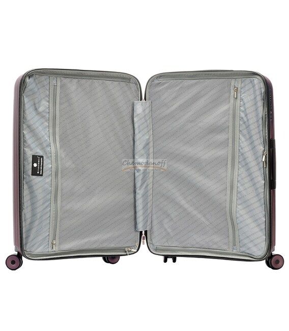 Усередині валіз є 2 відділення, одне з внутрішніми ременями кріплення багажу, інше закривається на блискавку.