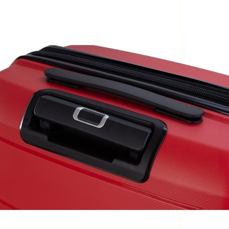 Алюмінієві телескопічні направляючі з ребрами жорсткості розташовані під кутом до корпусу для збільшення міцності, фіксуються в 2-х положеннях. Вбудований кодовий замок з функцією "TSA" (догляд багажу за відсутністю власника без пошкодження замка і валізи).