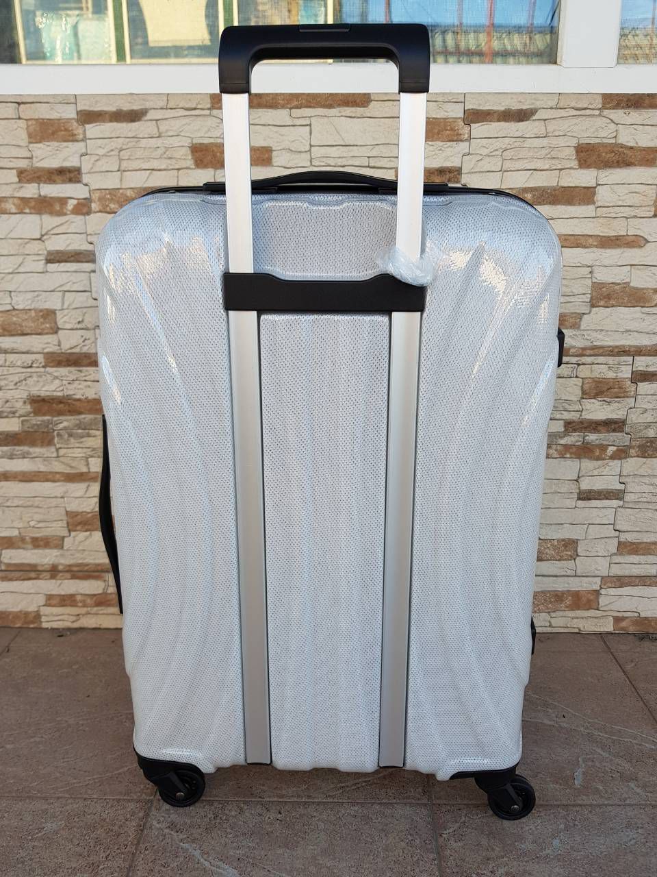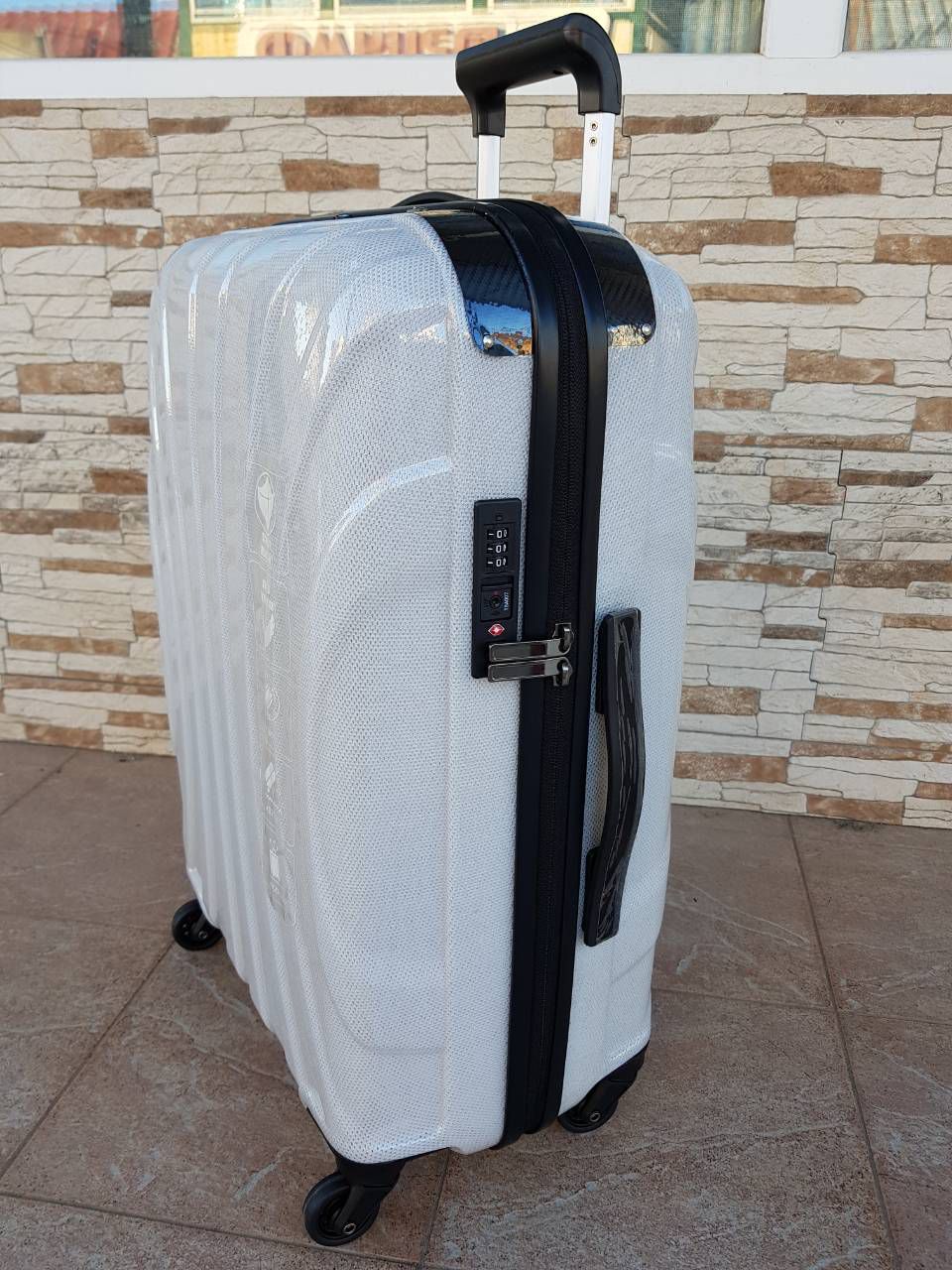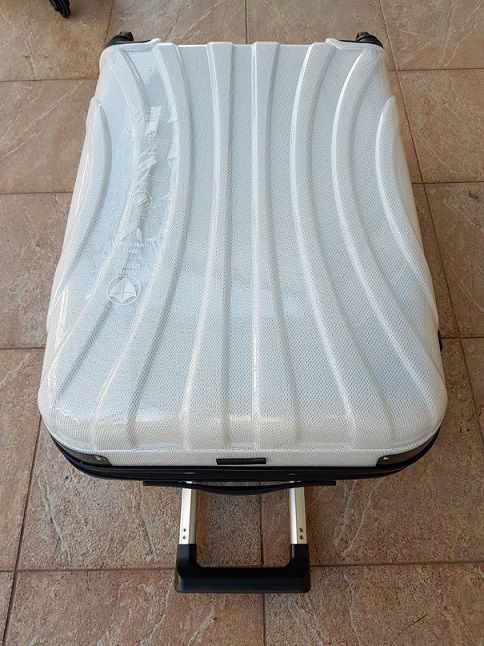 Сучасна і зручна дорожня валіза на колесах з ударостійкого зносостійкого інноваційного матеріалу PC ABS полікарбонату, з безшумними металевими колесами на підшипниках, що оснащенні прогумованою покришкою, які обертаються навколо своєї осі, забезпечений міцної висувною ручкою з фіксатором. Всі валізи мають кодовий замок, всередині два відділення розділені тканиною на блискавці, що розділяються кишеню, еластичні ремені для фіксації речей, корпус валізи твердий і міцний, майже не прогинається.