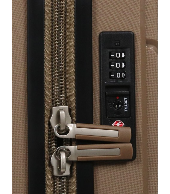 - Алюмінієва телескопічна ручка з ребрами жорсткості, фіксується в 2-х положеннях, вбудований кодовий замок з функцією "TSA". Основна блискавка корпусу - непромокаюча.
