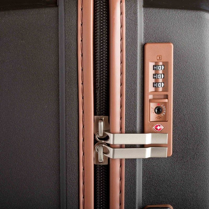 • Вбудований, кодовий 3-значний TSA замок для безпечної поїздки в США втоплений в корпус;
