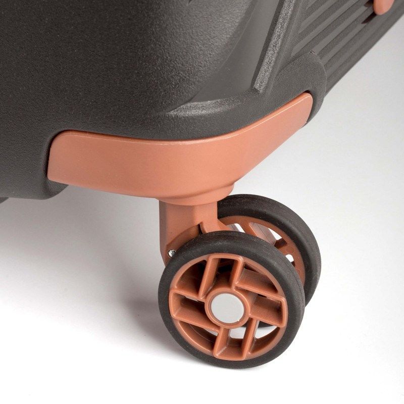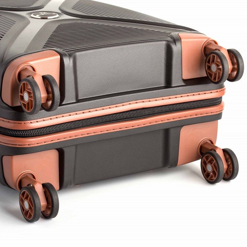 Чотириколісний чемодан з прогумованим корпусом. Виконаний з високоякісного надлегкого полікарбонату, який забезпечує тривалу експлуатацію і зносостійкість вироби, а також гарантує неперевершений захист ваших речей.