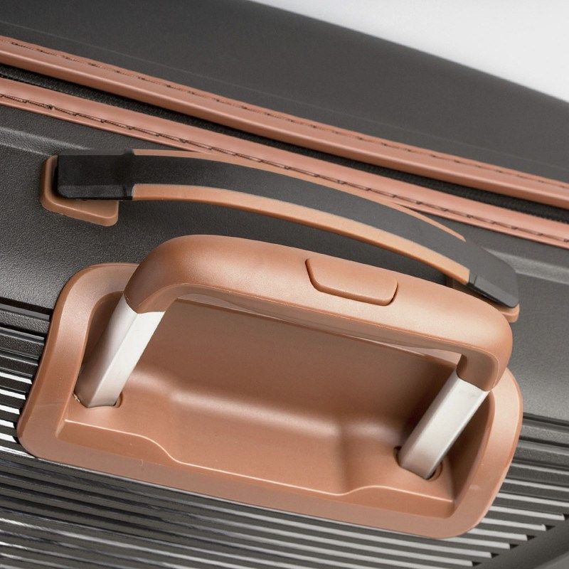 • Матова, шорстка текстура зовнішнього оздоблення корпусу для зниження кількості подряпин (ребра на поверхні валізи забезпечують додатковий захист за рахунок зміни траєкторії ударів);