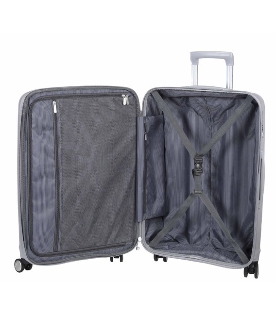 - Матеріал корпусу -100% поліпропілен, один з кращих матеріалів застосовуваних при виробництві дорожніх валіз. Представлена модель - розробка і гордість компанії. Основна частина корпусу валізи армована ниткою зі скловолокна - найвища стійкість до деформації і стирання.