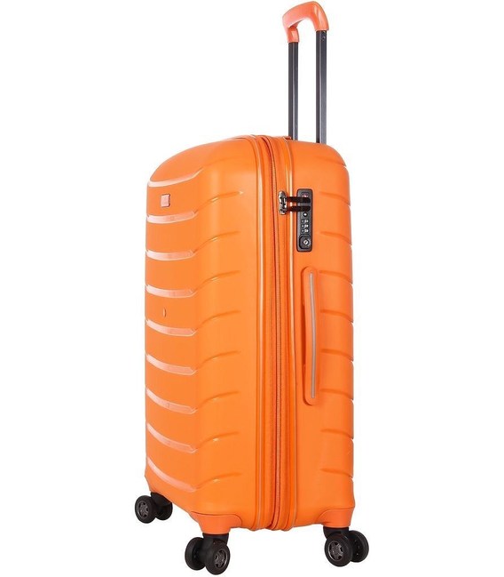 - Матеріал корпусу -100% поліпропілен, один з кращих матеріалів застосовуваних при виробництві дорожніх валіз. Представлена модель - розробка і гордість компанії. Основна частина корпусу валізи армована ниткою зі скловолокна - найвища стійкість до деформації і стирання.
