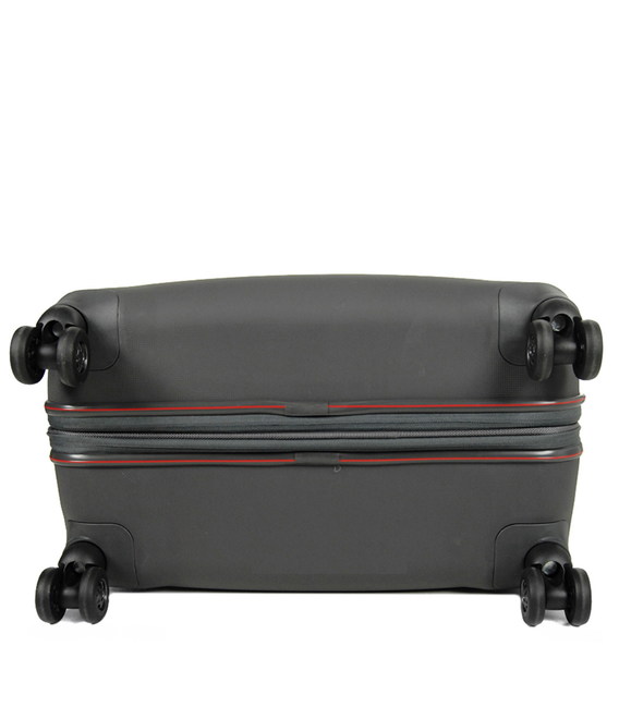 - 4 подвійних колеса з основою з ТПУ (Термополиуретан) кріпленням зі сталі та інноваційної (без шурупів) системою кріплення колісного блоку до корпусу (максимум надійності при експлуатації і здачі в багаж).
