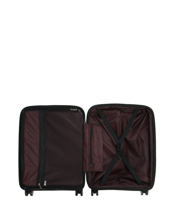 - Валіза закривається на блискавку, всередині передбачені притискні ремені для багажу в одному відділенні, друге закривається текстильної кришкою на блискавці.