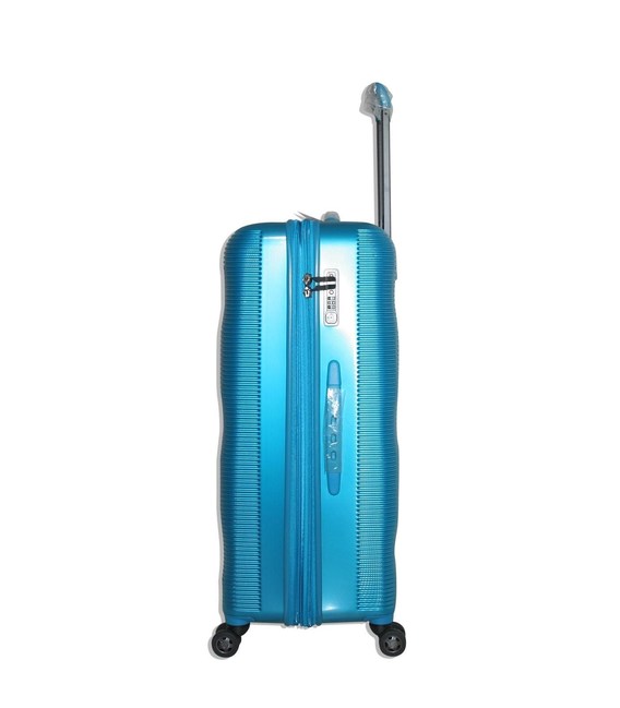 Валіза з ребристими черепашками має сучасний дизайн. Вона також стійка до ударів завдяки своїй конструкції з полікарбонату.